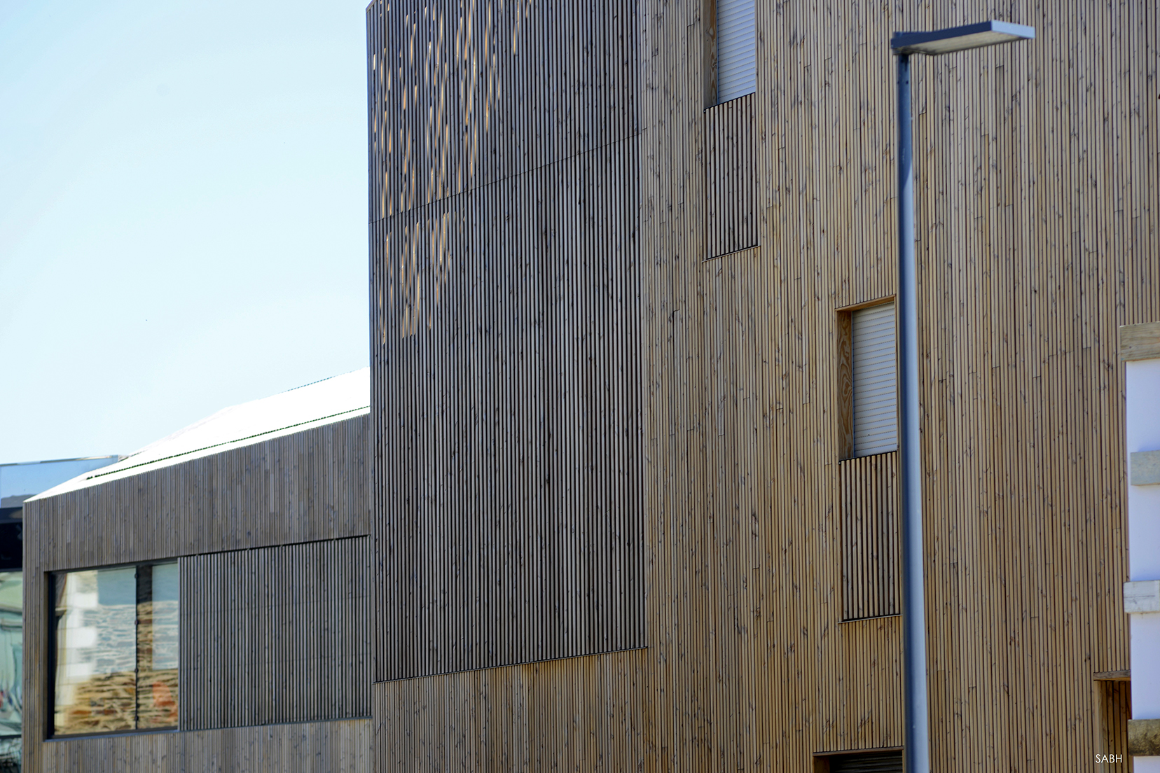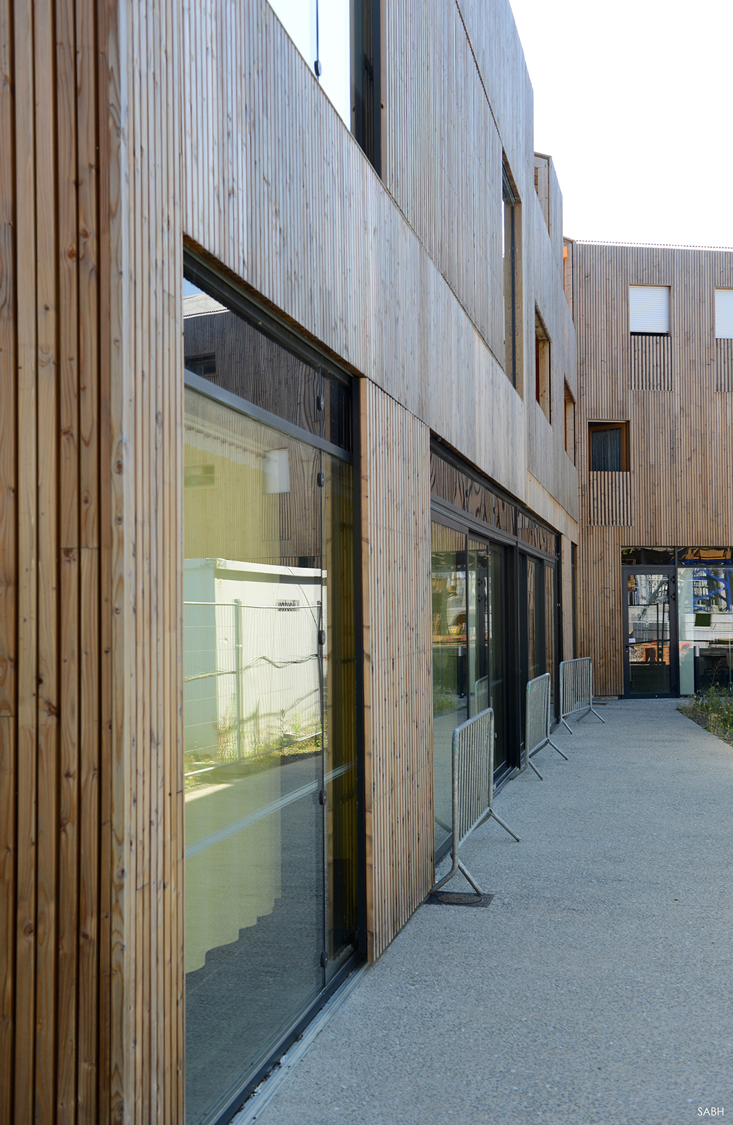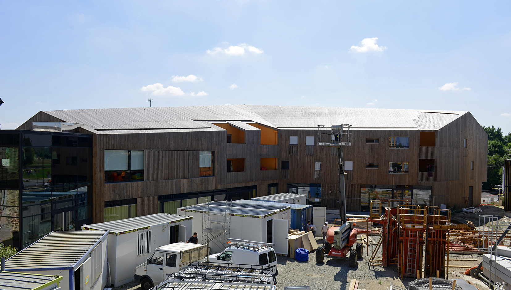Nous avons réalisé des logements ainsi qu'un restaurant scolaire à Ecouflant, en collaboration avec le cabinet d'architecte SABH.
